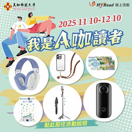 【活動一】活動期間借閱本校之HyRead電子書或雜誌,冊數達【5冊】以上,即可參加抽獎。